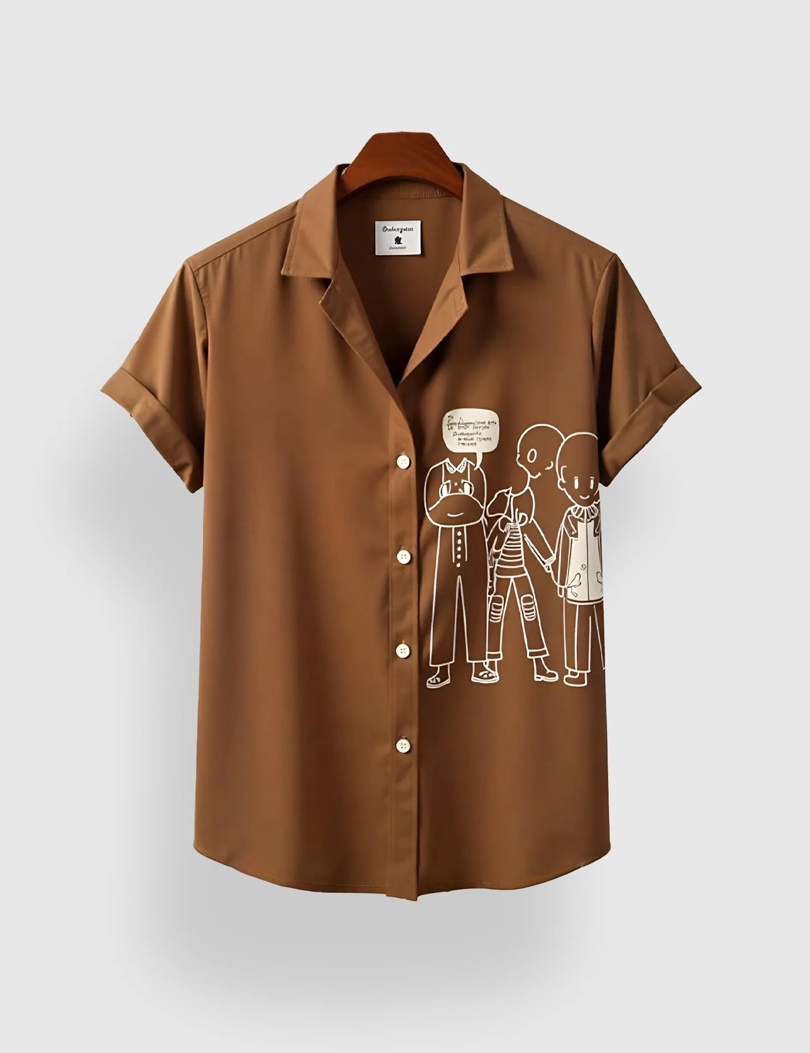 Brown White Outline Men's Half Sleeves Printed Shirt Exclusive