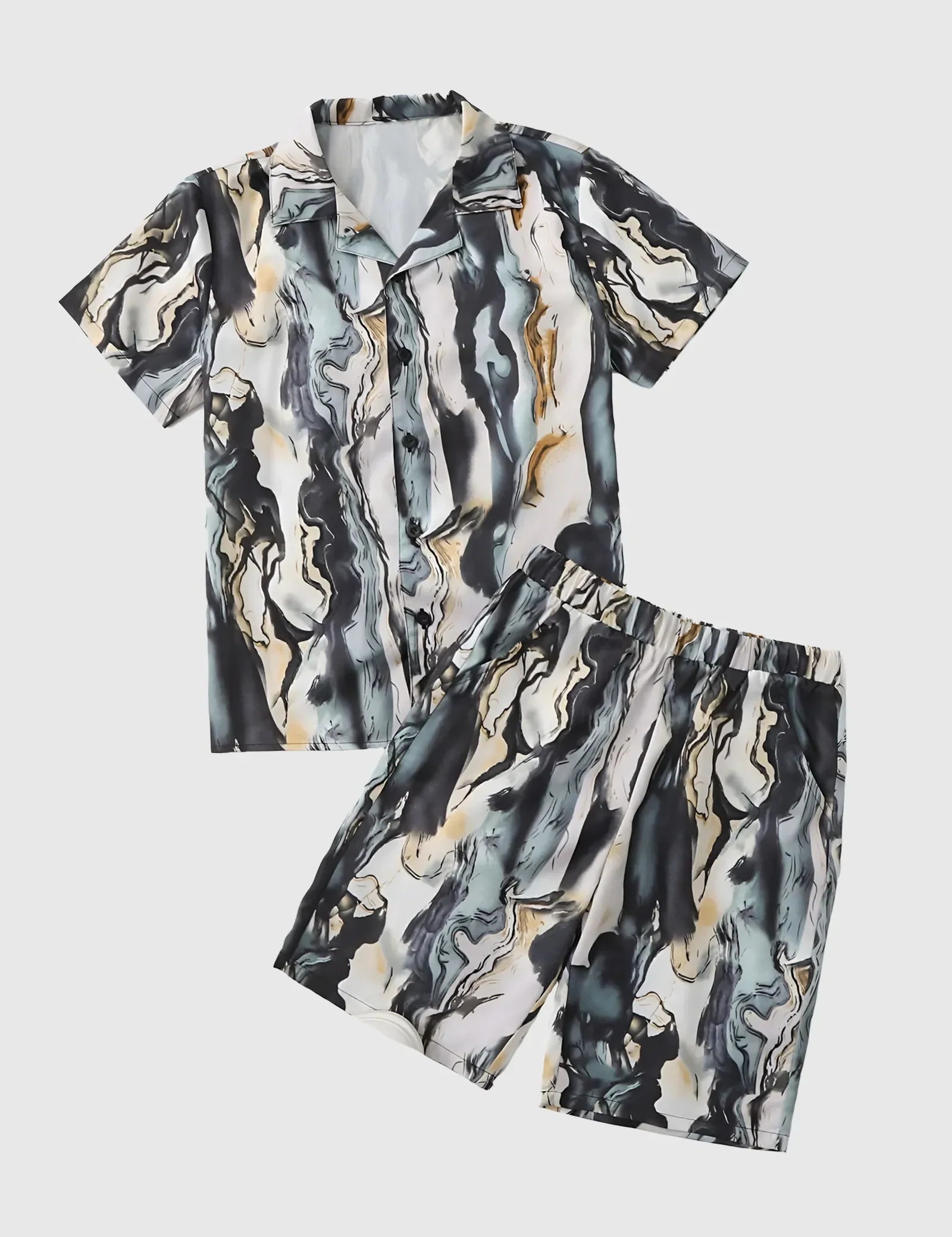 Men’s Abstract Marble Print Shirt and Shorts Co-ord Set