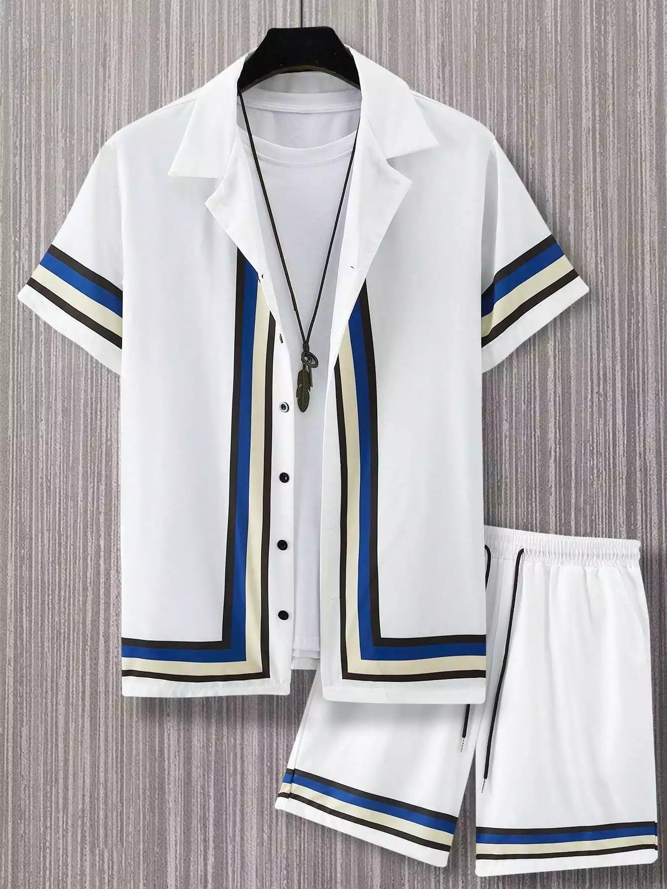 CORDS BLUE BORDER Design Mens Half Sleeves Premium Cords Cotton Material