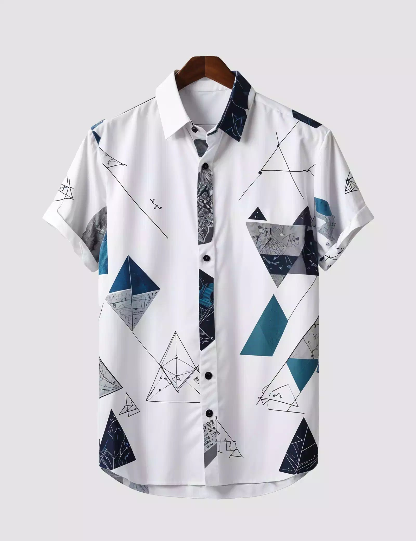White Geometry Printed Designer Men's Half Sleeves Printed Shirt Exclusive Super Sale